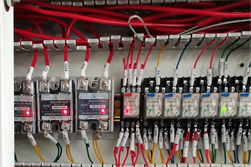 3、檢查設(shè)備的控制部分,對(duì)加熱進(jìn)行檢測(cè)和控制。固態(tài)繼電器是否有輸出,如果不確定,用相鄰溫區(qū)的繼電器切換,判斷繼電器是否有故障。
