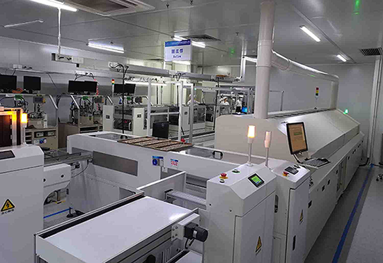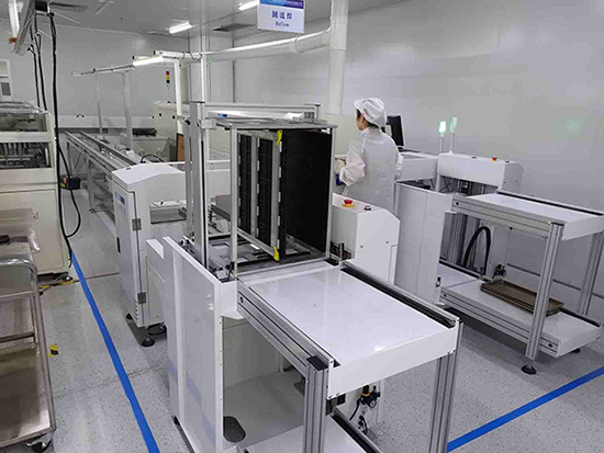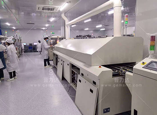 惠倫晶體晶振烤膠車間內(nèi)場景(拍攝照片經(jīng)由客戶同意)                    自動上下料機(jī)+雙軌道回流焊雙倍產(chǎn)能