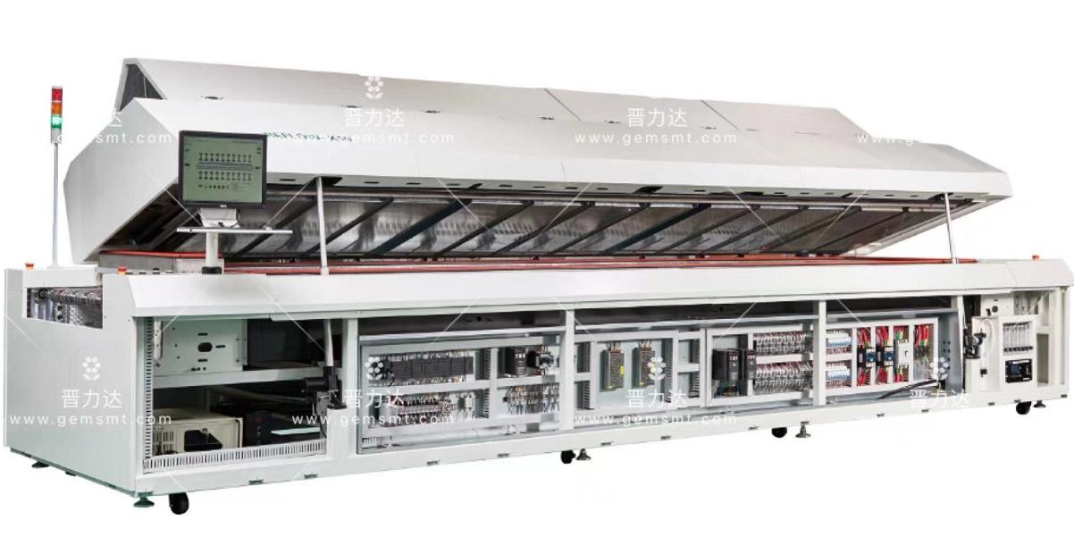 在目前所使用的大多數(shù)爐子都是強制熱風循環(huán)型的,在這種爐子中控制氮氣的消耗不是容易的事。有幾種方法來減少氮氣的消耗量,減少爐子進出口的開口面積,很重要的點就是要用隔板,卷簾或類似的裝置來阻擋沒有用到的那部分進出口的空間,另外種方式是利用熱的氮氣層比空氣輕且不易混合的原理,在設計爐的時候就使得加熱腔比進出口都高,這樣加熱腔內(nèi)形成自然氮氣層,減少了氮氣的補償量并維護在要求的度上。了解氮氣回流焊配置特點請點擊:氮氣回流焊