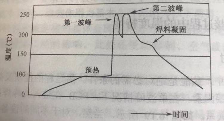 雙波峰焊接時(shí)設(shè)備測量溫度曲線如圖所示