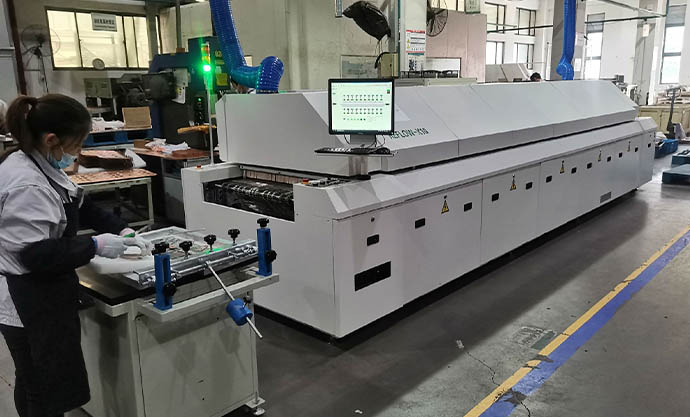 2021年4月7日我司工程曾工在上海鷹峰電子科技股份有限公司場內(nèi)調(diào)試氮氣回流焊設(shè)備,主要用于新能源電抗器,熱傳組件的焊接。大型環(huán)保全熱風(fēng)全電腦控制上十下十回流焊機G-F1020-LF,全熱風(fēng)/網(wǎng)帶+電腦,承重人字網(wǎng)帶,900MM寬網(wǎng)帶,帶殘氧分析儀和氮氣密封,外置冷水機結(jié)構(gòu)。(拍攝照片經(jīng)由客戶同意)