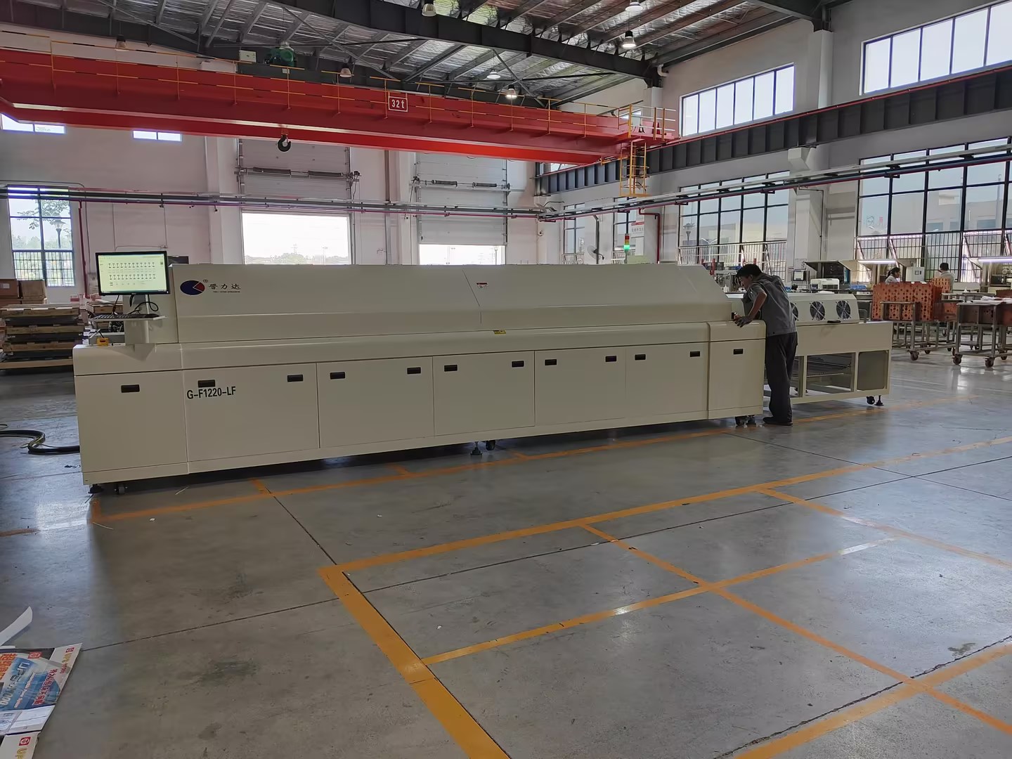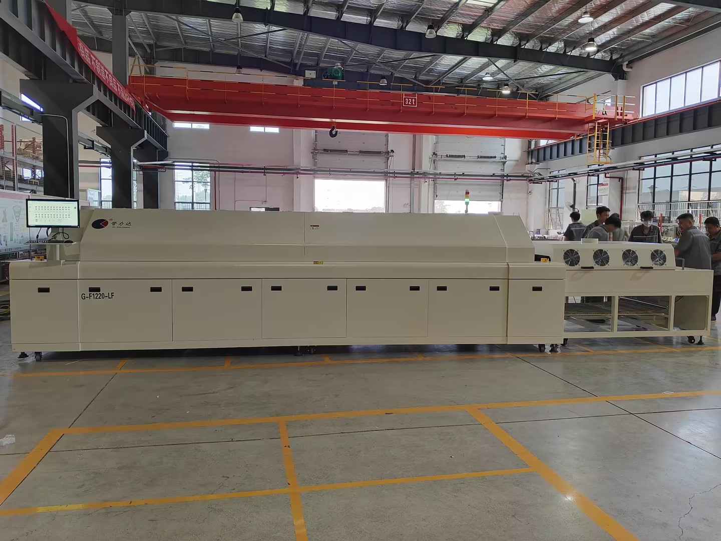 北京維通利電氣有限公司分公司株洲維通利電氣有限公司在2023年8月7號 采購我司晉力達(dá)大型環(huán)保全熱風(fēng)全電腦 控制12溫區(qū)回流焊G-F1220-LF 全熱風(fēng)/網(wǎng)帶+電腦+6段冷卻900MM寬網(wǎng)帶,網(wǎng)帶以上內(nèi)空高度100MM,方向左進(jìn)右出,加通過式全自動(dòng)清洗機(jī)(兩段泵浦噴淋+風(fēng)機(jī) 風(fēng)刀+熱風(fēng)烘干,網(wǎng)帶寬900MM,用于疊層母排回流焊。